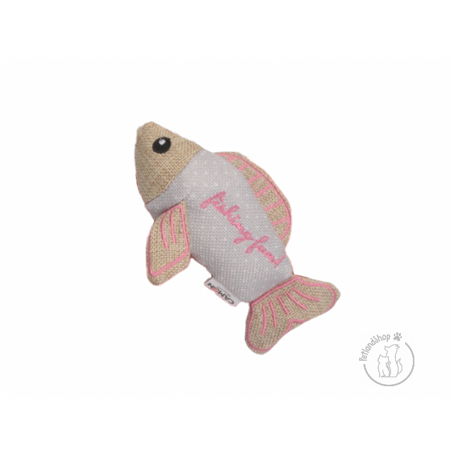 Vászonból készült halacska macskajáték. Szín: fehér, piros Méret: 13,5 cm