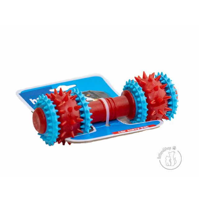 Kialakítása és anyaga miatt jó strapabíró rágóka, amely nem csak játék lehetőség a kis vagy közepes kutyáknak, hanem fogtisztításra és annak erősítésére is kiválóan alkalmas Szín: kék-piros Méret: 15 cm