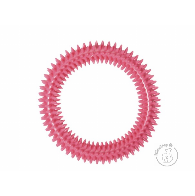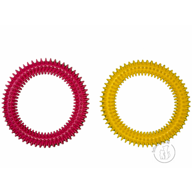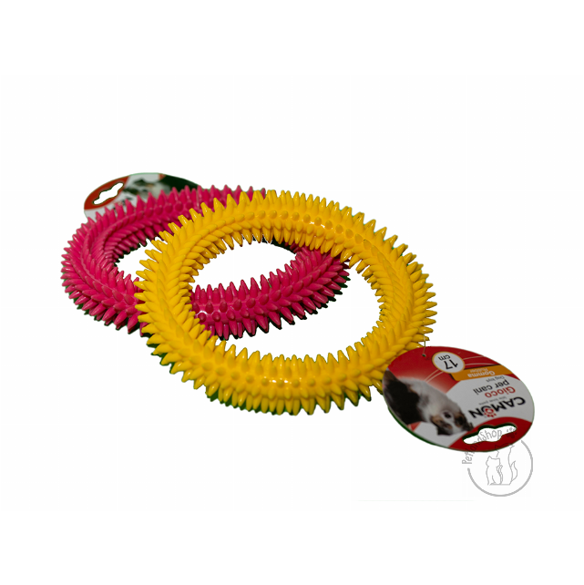 Kemény műanyagból készült masszírozós karika játék. Nem csak a fogakat, de kialakításának köszönhetően az ínyét is kényezteti. Szín: sárga, rózsaszín Méret: 17 cm