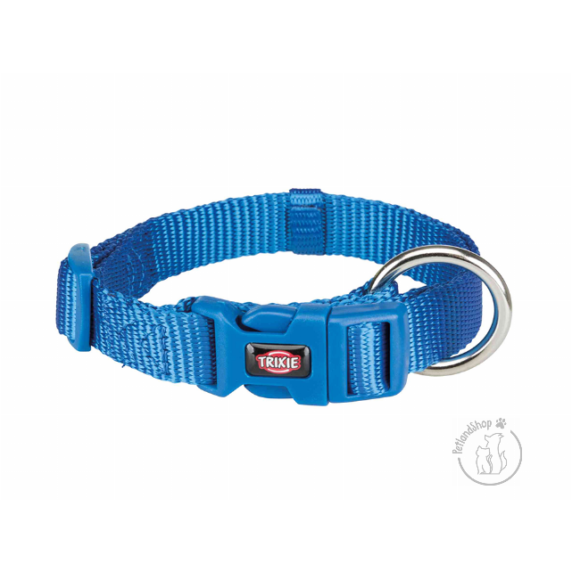 Állítható, biztonsági zárral, húzáscsökkentő csattal. állatvédelmi előírásoknak megfelelő. Poliészterből készült. Szín: Királykék Méret: XS-S 22-35 cm/15mm S-M 30-45 cm/15mm